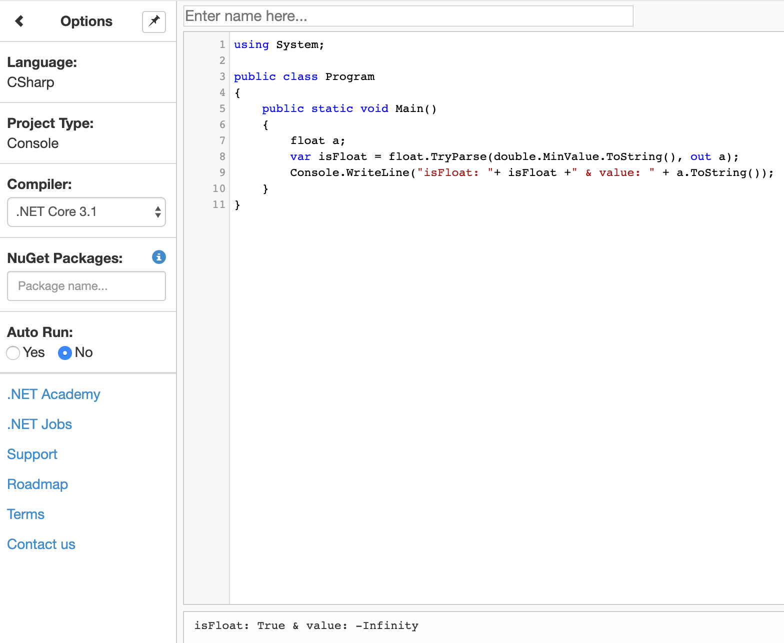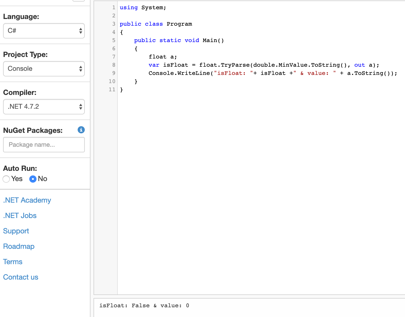 The test was expecting isFloat to be false since it was trying to parse the value of Double.Min. Ok, I didn't touch anything related to these besides the framework update. It must have to do with the framework code, I thought.