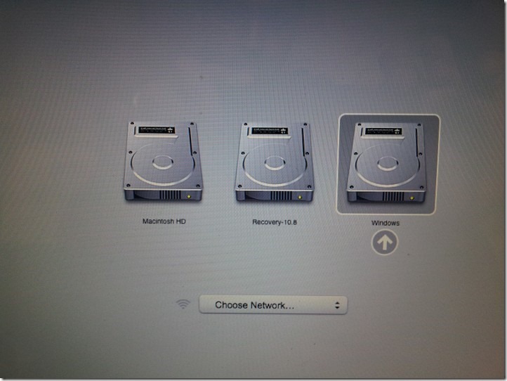 Here’s the trick. Shutdown the computer, HOLD the wonderful option button down and press the power button, then you should see something like below.